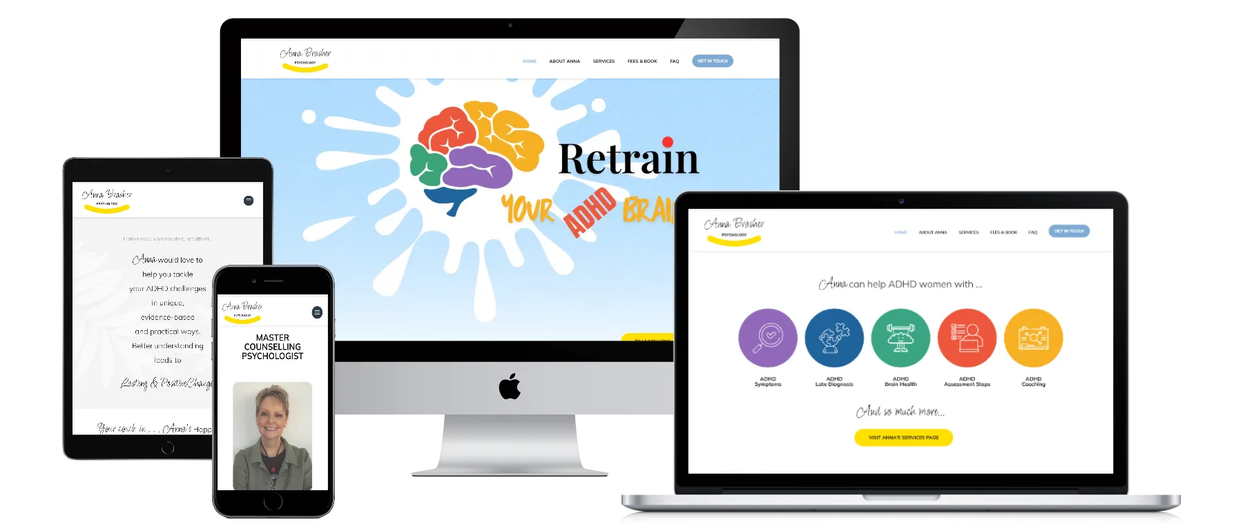 The website was designed to align with Anna’s calm, grounded, and highly personal style of practice, while making key services such as anxiety, depression, and ADHD support easier to understand and access.