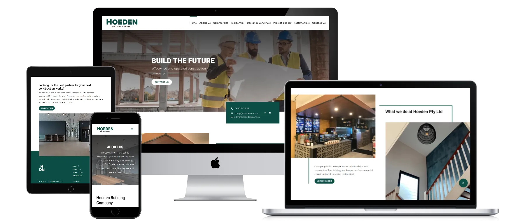 Hoeden is a Western Australia-based building company delivering commercial construction, refurbishments, and residential projects. The website was redesigned to present a professional and trustworthy digital presence with a clear focus on completed work.